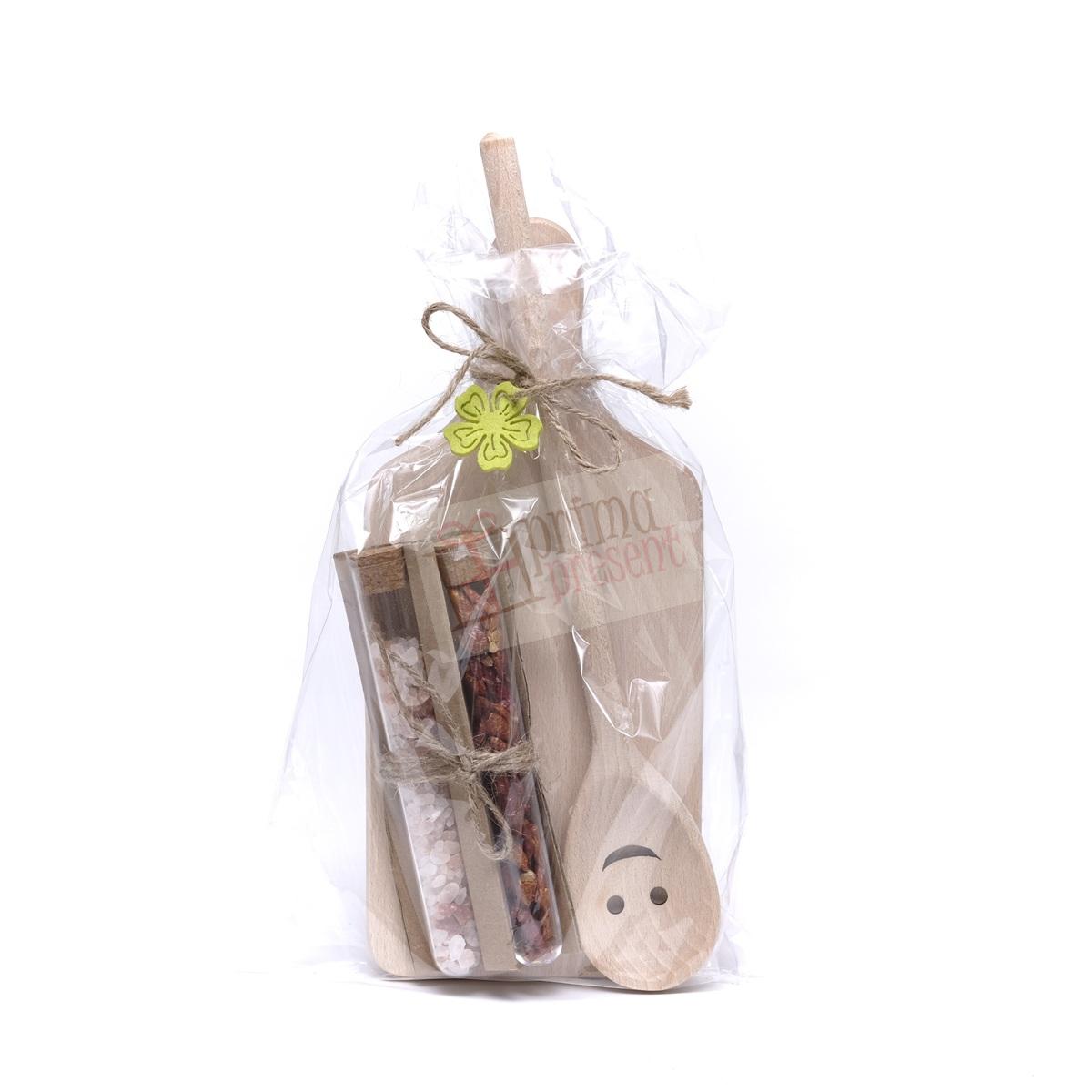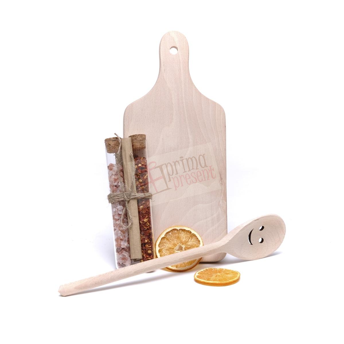 Tento darček spája prírodnú himalájsku soľ, pikantné chilli papričky a praktický drevený lopárik, ktorý ocení každý kuchár.