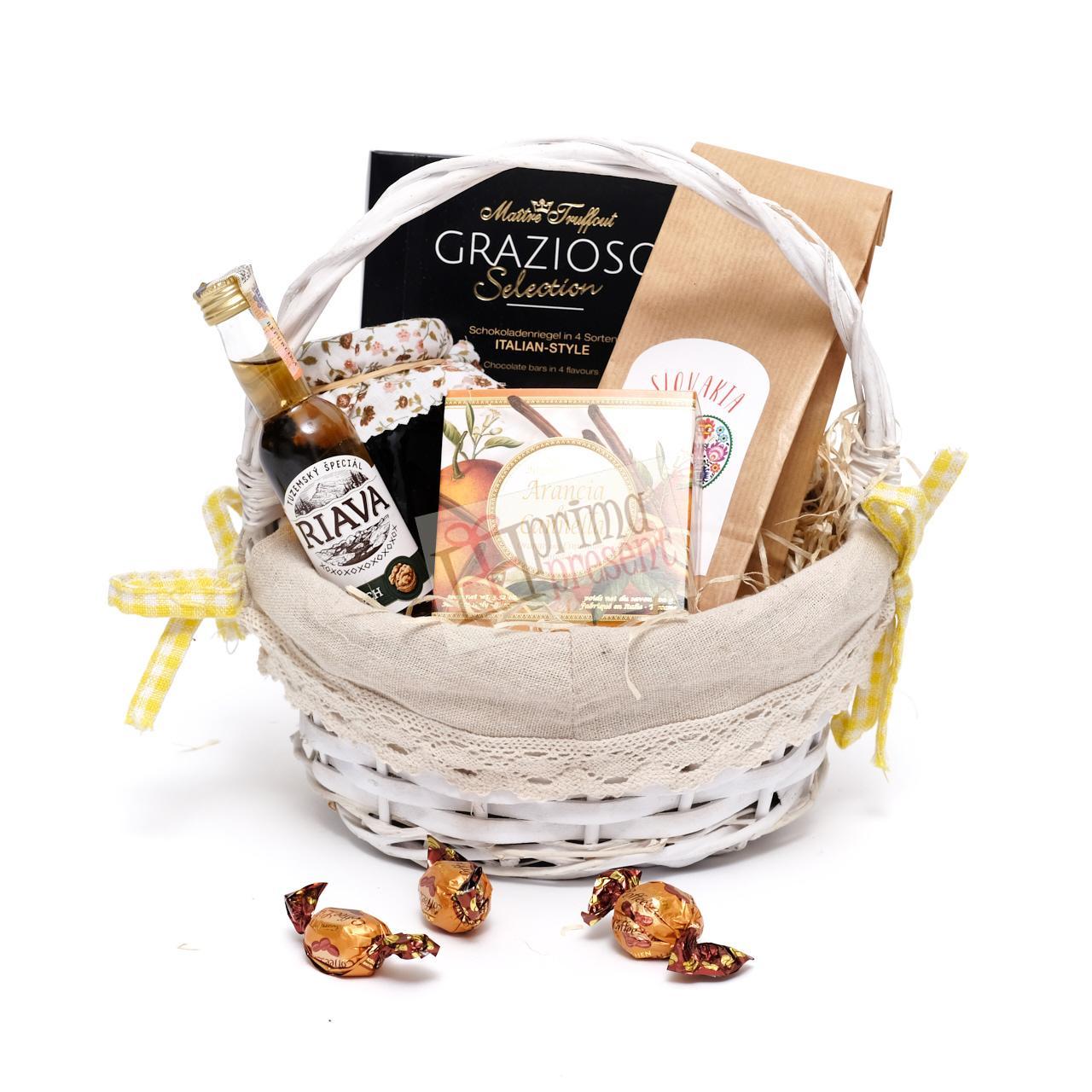Darčekový kôš Zlatý poklad spája luxus, gurmánske produkty a prestížny dizajn, čím vytvára ideálny darček na každú výnimočnú príležitosť.