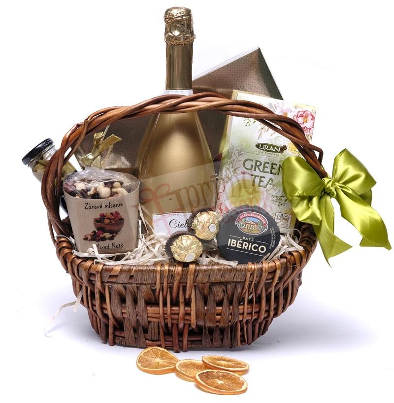 Darčekový kôš Zlatý poklad spája luxus, gurmánske produkty a prestížny dizajn, čím vytvára ideálny darček na každú výnimočnú príležitosť.